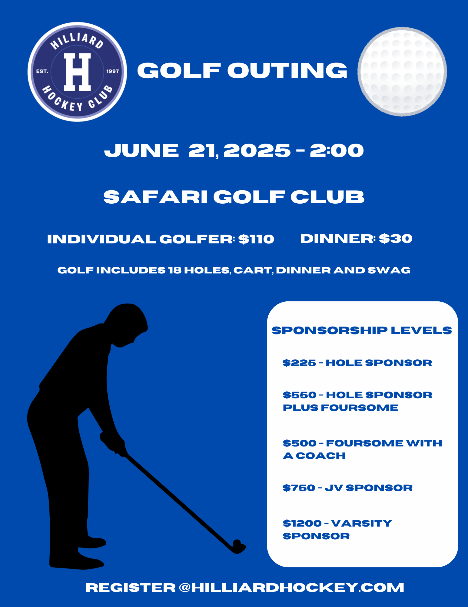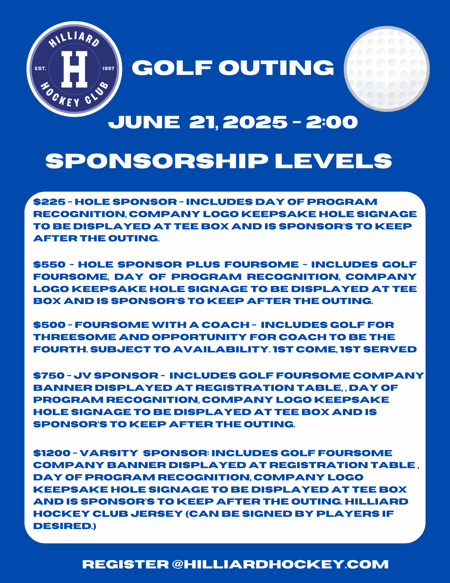 Sponsors - You may register through the website or by reaching out to the board at hilliardhockeyboard@gmail.com. Payment may be made through the website or via check to one our board members.